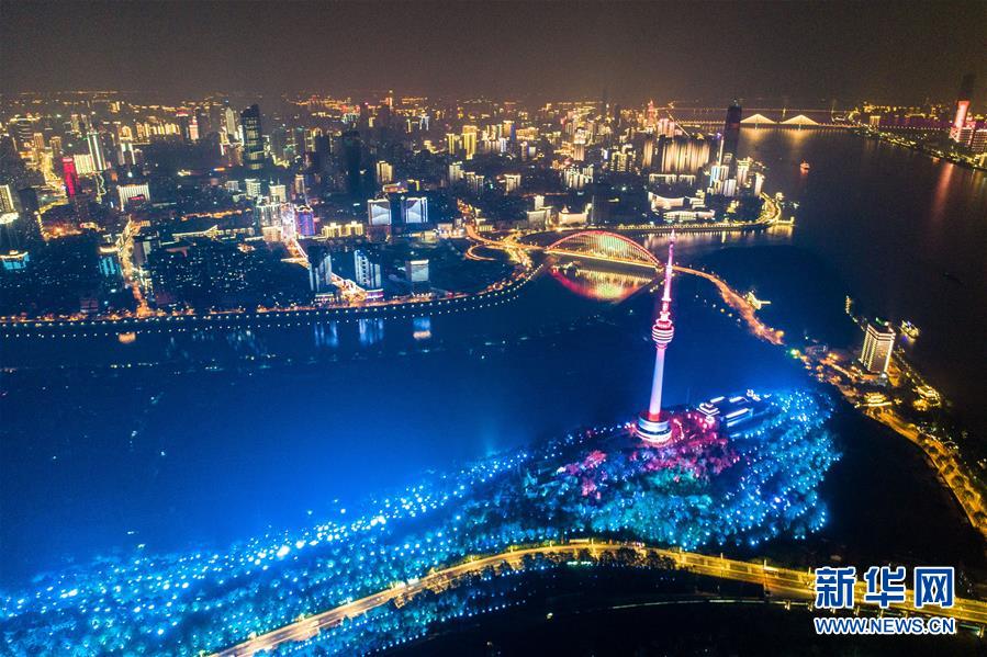 4月8日零時(shí)起,武漢市正式解除離漢離鄂通道管控措施,全市景觀照明開啟(無人機(jī)拍攝)。新華社記者程敏攝