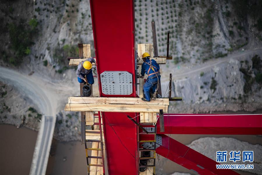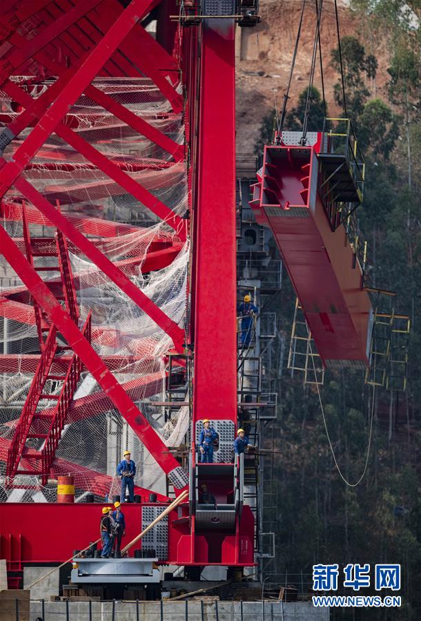 4月8日清晨,工人在中老鐵路元江特大橋上進(jìn)行鋼桁梁架設(shè)作業(yè)(無人機(jī)照片)。4月7日,中老鐵路全線重點(diǎn)控制性工程——元江特大橋迎來關(guān)鍵節(jié)點(diǎn),主橋鋼桁梁正式“邁”過154米高的主橋墩,這是世界同類鐵路橋梁第一高墩。元江特大橋位于云南省元江縣,采用上承式連續(xù)鋼桁梁跨越峽谷,全長(zhǎng)832.2米,建成后,其249米的主跨也將刷新國(guó)內(nèi)同類橋梁跨度紀(jì)錄。新華社記者江文耀攝
