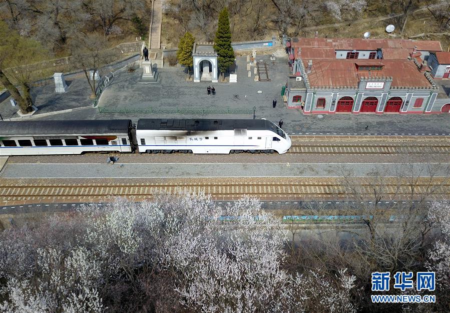 4月8日,北京青龍橋火車站附近春花盛開(無人機照片)。 當日,北京青龍橋火車站附近,春花綻放,為這座百年火車站增添濃濃春意。 新華社記者張晨霖攝