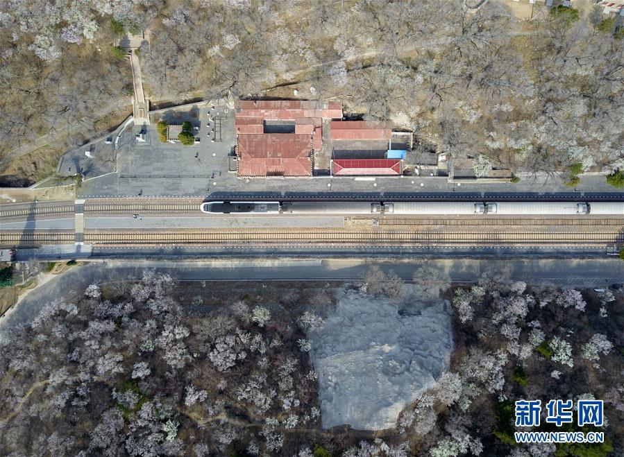 4月8日,北京青龍橋火車站附近春花盛開(kāi)(無(wú)人機(jī)照片)。 新華社記者張晨霖?cái)z