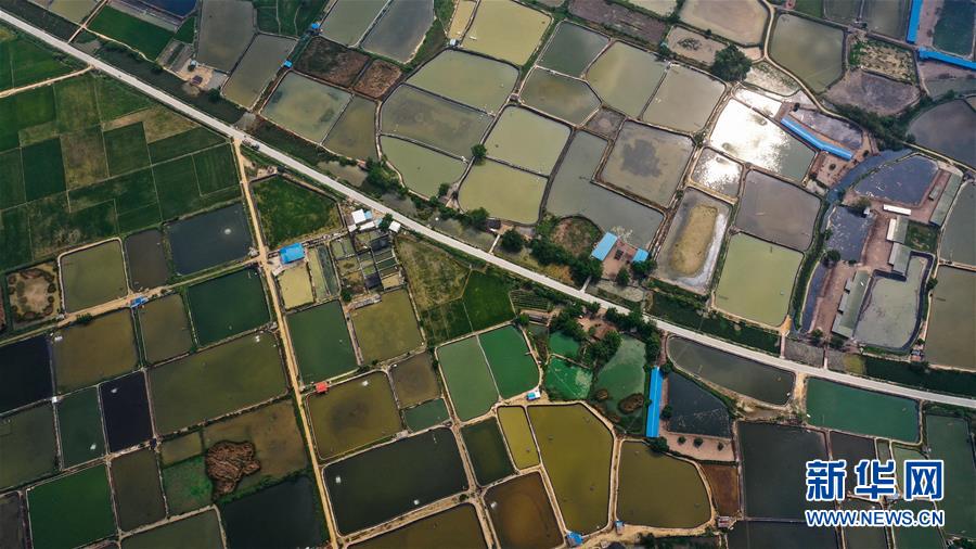 這是4月21日拍攝的合浦縣境內的春日風光(無人機照片)。暮春時節(jié),從空中俯瞰廣西北海市合浦縣大地,河流、稻田、蝦塘、道路、村莊星羅棋布、色彩斑斕,美不勝收。新華社記者張愛林攝