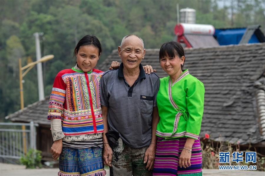 在云南省勐海縣布朗山鄉(xiāng)曼囡村曼班三隊(duì),娜四(右)和父親(中)、妹妹在村里合影(4月12日攝)。新華社記者胡超攝