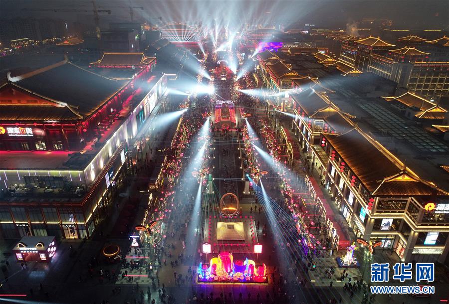 西安大唐不夜城夜景(2019年2月17日無人機(jī)照片)。 新華社記者 邵瑞 攝
