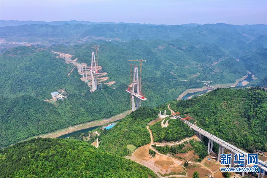 這是建設(shè)中的遵余高速湘江大橋(4月26日攝,無人機(jī)照片)。近日,由中鐵廣州局承建的貴州遵余高速湘江大橋工程在做好疫情防控的同時(shí),全力恢復(fù)生產(chǎn)建設(shè)。目前工程進(jìn)展順利,正在進(jìn)行主橋鋼梁架設(shè),預(yù)計(jì)將于8月底合龍。據(jù)了解,遵余高速湘江大橋橋梁全長1700余米,主跨560米。新華社記者劉續(xù)攝