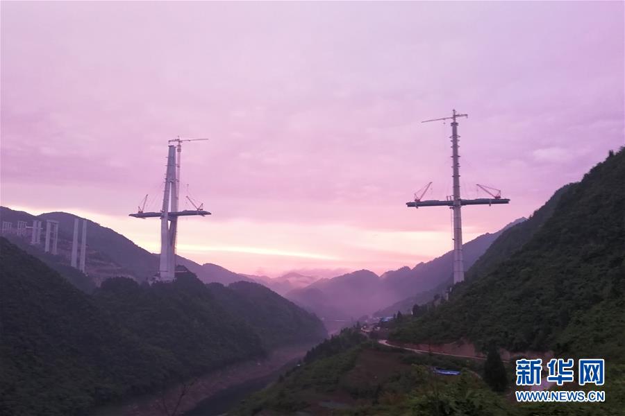 這是建設(shè)中的遵余高速湘江大橋(4月26日攝,無人機(jī)照片)。近日,由中鐵廣州局承建的貴州遵余高速湘江大橋工程在做好疫情防控的同時,全力恢復(fù)生產(chǎn)建設(shè)。目前工程進(jìn)展順利,正在進(jìn)行主橋鋼梁架設(shè),預(yù)計將于8月底合龍。據(jù)了解,遵余高速湘江大橋橋梁全長1700余米,主跨560米。新華社記者劉續(xù)攝