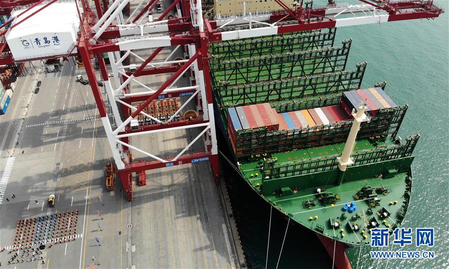 世界最大集裝箱船首航青島港 甲板面積相當于3.5個足球場