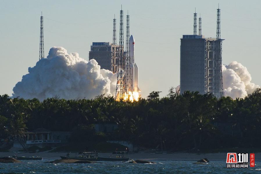 5月5日,為我國載人空間站工程研制的長征五號B運載火箭在海南文昌首飛成功。新華社記者郭程攝