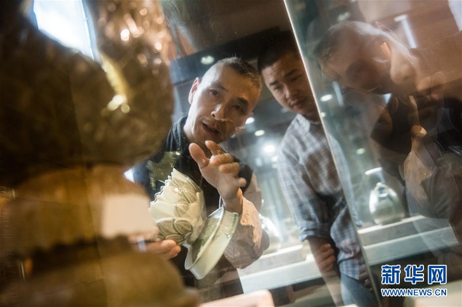 5月7日,瓷器愛好者在龍泉青瓷裝飾紋樣研究所參觀。1965年出生的項宏金,被浙江龍泉年輕一代瓷人稱為“項哥”,他從20世紀90年代開始收集龍泉青瓷標本,研究青瓷紋樣。2014年出版著作《龍泉青瓷裝飾紋樣》,次年開設龍泉青瓷裝飾紋樣研究所,將自己收藏的千余件標本跟瓷器愛好者、創(chuàng)作者免費分享。新華社記者翁忻旸攝