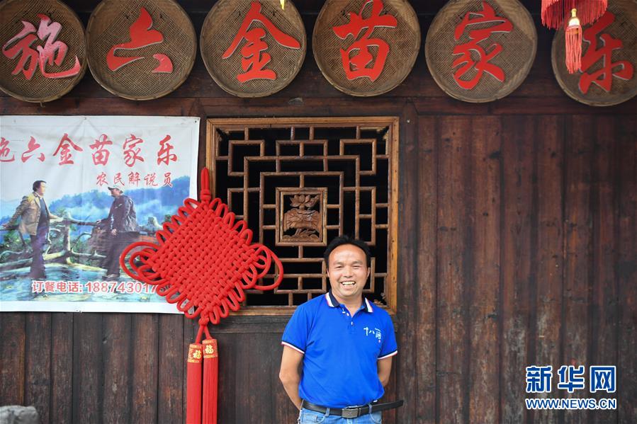 這是施六金在他的農(nóng)家樂前留影(4月25日攝)。1973年出生于十八洞村的施六金,由于父親患病很早就放棄學(xué)業(yè)和母親扛起了家庭的重?fù)?dān)。為了生活,他還曾遠(yuǎn)去東南亞打工。2015年,看到家鄉(xiāng)的變化,施六金回到村里開起了農(nóng)家樂,年度家庭人均純收入也從2014年的1715元增長到了2019年的35696元。2018年,施六金與心愛的人組建了家庭。今年初,施六金與愛人迎來了一個(gè)大胖小子。“做人做事要懂得回報(bào)和感恩。”施六金給剛出生的兒子取名施澤恩。新華社記者薛宇舸攝