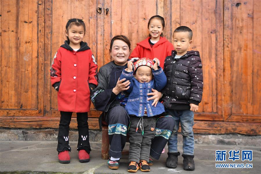 這是4月24日拍攝的吳美金(左二)和她孫子孫女的合影。1967年出生的吳美金,1992年嫁入飛蟲村(現(xiàn)十八洞村飛蟲寨)時(shí),只有爛泥路的飛蟲村不僅田土少,掙錢活路也少,生活十分困難。2014年,吳美金加入了十八洞村苗繡特產(chǎn)農(nóng)民專業(yè)合作社,從小就會(huì)的苗繡傳統(tǒng)手藝如今成了家庭增收的法寶,不僅在家門口就把錢掙了,同時(shí)還能照顧年幼的孫子孫女?!艾F(xiàn)在的日子,比年輕的時(shí)候好多了。”吳美金說。新華社記者薛宇舸攝