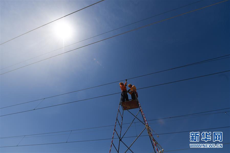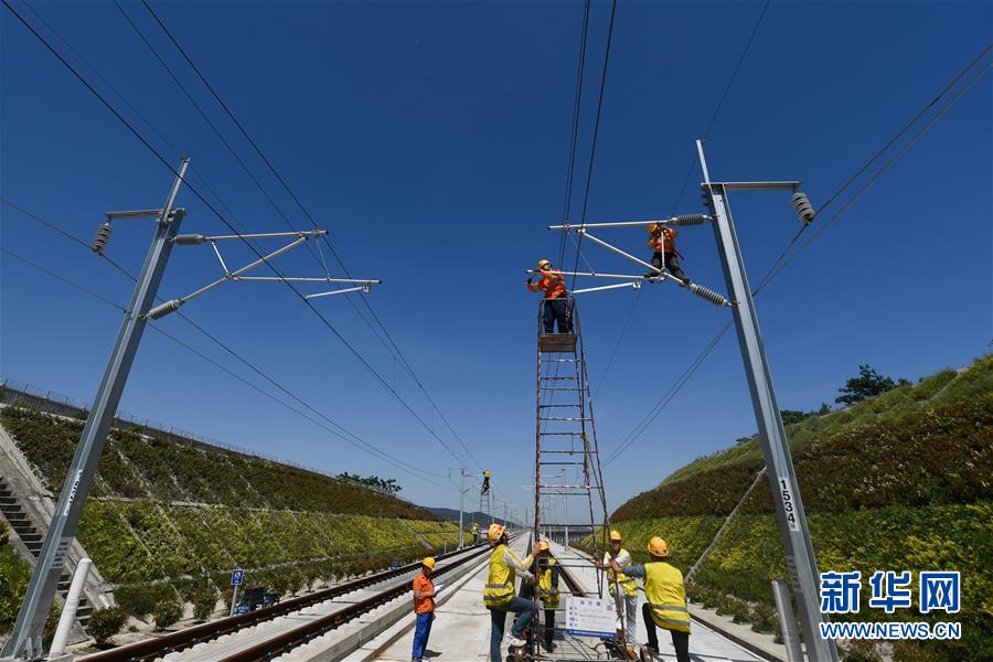 5月12日,中國(guó)鐵路上海局集團(tuán)公司上海高鐵維修段的技術(shù)人員在商合杭高鐵浙江湖州段調(diào)整接觸網(wǎng)導(dǎo)線。近日,商合杭高鐵合肥至湖州段聯(lián)調(diào)聯(lián)試正有條不紊進(jìn)行中。中國(guó)鐵路上海局集團(tuán)公司上海高鐵維修段抽調(diào)49名精兵強(qiáng)將,持續(xù)對(duì)管轄范圍內(nèi)的高鐵線路、信號(hào)、接觸網(wǎng)線進(jìn)行調(diào)試,為下一階段打下基礎(chǔ)。據(jù)了解,商合杭高鐵合湖段聯(lián)調(diào)聯(lián)試之后將轉(zhuǎn)入運(yùn)行試驗(yàn)階段,驗(yàn)收合格并通過安全評(píng)估后,力爭(zhēng)6月底具備開通運(yùn)營(yíng)條件。新華社記者黃宗治攝