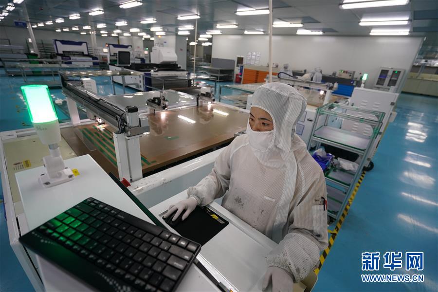 在位于宿遷激光產(chǎn)業(yè)園的江蘇華科創(chuàng)智技術(shù)有限公司,工人在觸摸屏生產(chǎn)車間作業(yè)(5月13日攝)。江蘇省宿遷市2016年初啟動(dòng)建設(shè)宿遷激光產(chǎn)業(yè)園,目前,園區(qū)共有激光及相關(guān)配套企業(yè)50余家,涉及激光切割、激光打標(biāo)、激光醫(yī)療等。當(dāng)?shù)夭粩嗤晟茍@區(qū)配套設(shè)施,推動(dòng)激光產(chǎn)業(yè)集聚,打造激光研發(fā)、裝備制造和加工應(yīng)用的完整產(chǎn)業(yè)鏈。新華社記者季春鵬攝
