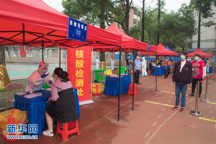5月15日,在武漢東西湖區(qū)吳家山第一小學(xué)操場(chǎng)檢測(cè)點(diǎn),工作人員對(duì)市民進(jìn)行核酸檢測(cè)。近日,武漢將對(duì)全市市民有序開展核酸檢測(cè),進(jìn)一步摸清無癥狀感染者底數(shù),進(jìn)而有效管控。新華社記者肖藝九攝