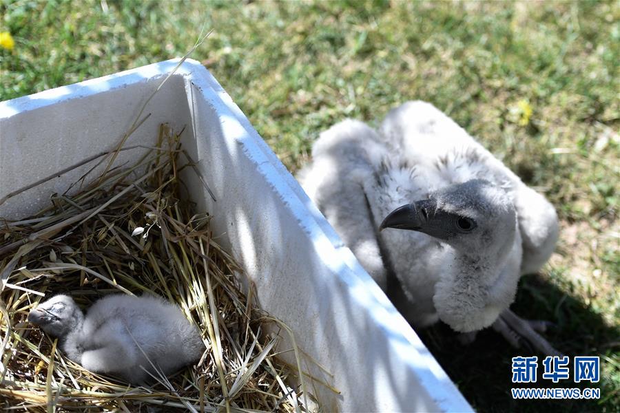 這是5月17日在西寧野生動(dòng)物園拍攝的兩只人工繁育的高山兀鷲。新華社記者張龍攝
