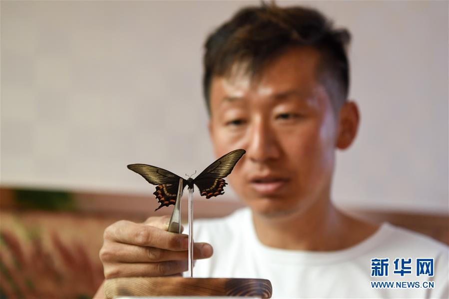 在吉木薩爾縣七彩蝶園,關(guān)富云在制作蝴蝶標(biāo)本(5月15日攝)。走進(jìn)關(guān)富云的七彩蝶園,游客不僅可以近距離接觸翩翩起舞的蝴蝶,還可以欣賞蝴蝶破繭成蝶的蛻變過(guò)程。今年34歲的關(guān)富云用9年的時(shí)間實(shí)現(xiàn)了自己的“蝴蝶夢(mèng)”,完成美麗的“蝶變”。關(guān)富云家住新疆吉木薩爾縣北地社區(qū)。2011年,他看到一檔農(nóng)業(yè)致富節(jié)目,萌生了養(yǎng)殖蝴蝶的想法。關(guān)富云說(shuō),當(dāng)時(shí)蝴蝶養(yǎng)殖還是一種新興產(chǎn)業(yè),他抱著試一試的想法,在海南學(xué)習(xí)了3個(gè)月蝴蝶養(yǎng)殖,帶回100多個(gè)蝶蛹在家試驗(yàn)養(yǎng)殖。蝴蝶的生存周期短,在當(dāng)?shù)仞B(yǎng)殖需要克服溫度、濕度、病蟲(chóng)害等問(wèn)題。關(guān)富云不斷嘗試,越挫越勇,羽化成功的蝴蝶在2014年終于突破了萬(wàn)只。蝴蝶的色彩艷麗,活體蝴蝶可用于婚慶、開(kāi)業(yè)慶典等活動(dòng)中放飛,可以取得很好的收益。但它的生命短暫,如何才能最大化蝴蝶的效益,留住它的美呢?關(guān)富云動(dòng)起了心思,開(kāi)始嘗試制作標(biāo)本和蝶翅畫(huà)?!昂宛B(yǎng)殖不同,做蝶翅畫(huà)是個(gè)創(chuàng)作的過(guò)程,從選擇標(biāo)本到粘貼,每一步都要突出美感。”關(guān)富云介紹,一幅色彩明艷、栩栩如生的蝶翅畫(huà)耗時(shí)多日才能完成。如今,關(guān)富云的活體蝴蝶和蝶翅畫(huà)通過(guò)線上線下銷(xiāo)售,產(chǎn)品還銷(xiāo)往北京、廈門(mén)等地。關(guān)富云的蝴蝶產(chǎn)品得到市場(chǎng)的認(rèn)可,政府也對(duì)他給予大力支持。2019年,吉木薩爾縣在泉子街鎮(zhèn)建起蝴蝶觀賞園,吸引了不少游客到此參觀游玩。對(duì)于未來(lái)的發(fā)展,關(guān)富云信心滿(mǎn)滿(mǎn),“我希望把蝴蝶產(chǎn)業(yè)發(fā)展到天山南北,讓人們?cè)诤涞亩疽材苡^賞到蝴蝶,并且讓更多人參與其中,致富脫貧”。新華社記者丁磊攝