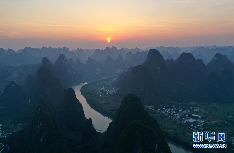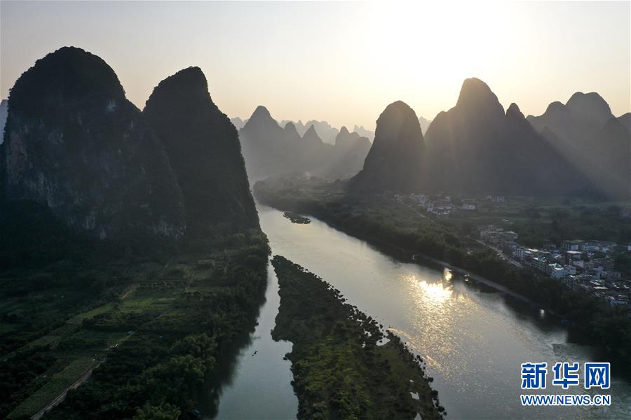 這是在廣西桂林市陽朔縣興坪鎮(zhèn)拍攝的山水風(fēng)光(5月21日攝,無人機(jī)全景照片)?!吧n蒼森八桂,茲地在湘南。江作青羅帶,山如碧玉篸……”一千多年前,唐朝詩人韓愈寫盡桂林山水之美。初夏時節(jié),在廣西桂林市陽朔縣興坪鎮(zhèn),藍(lán)天白云下,煙雨朦朧中,桂林山水盡顯秀美。新華社記者周華攝