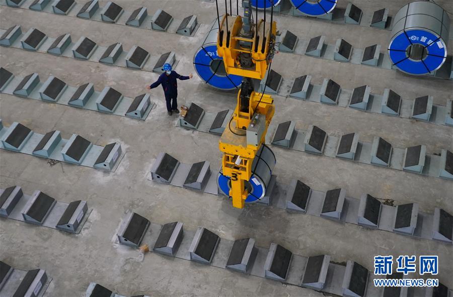 5月22日,工人在遷安市首鋼遷鋼高端汽車板生產(chǎn)車間成品區(qū)工作。近日,首鋼股份公司遷安鋼鐵公司高端汽車板生產(chǎn)線項(xiàng)目在河北省遷安市投產(chǎn)。該項(xiàng)目具有技術(shù)水平領(lǐng)先、操作智能、節(jié)能環(huán)保等優(yōu)勢,酸洗板材年產(chǎn)量達(dá)100萬噸,產(chǎn)品主要應(yīng)用于高端汽車零部件生產(chǎn)及空調(diào)壓縮機(jī)用鋼和高強(qiáng)系列用鋼、精沖用鋼等多個(gè)領(lǐng)域。新華社記者 楊世堯 攝