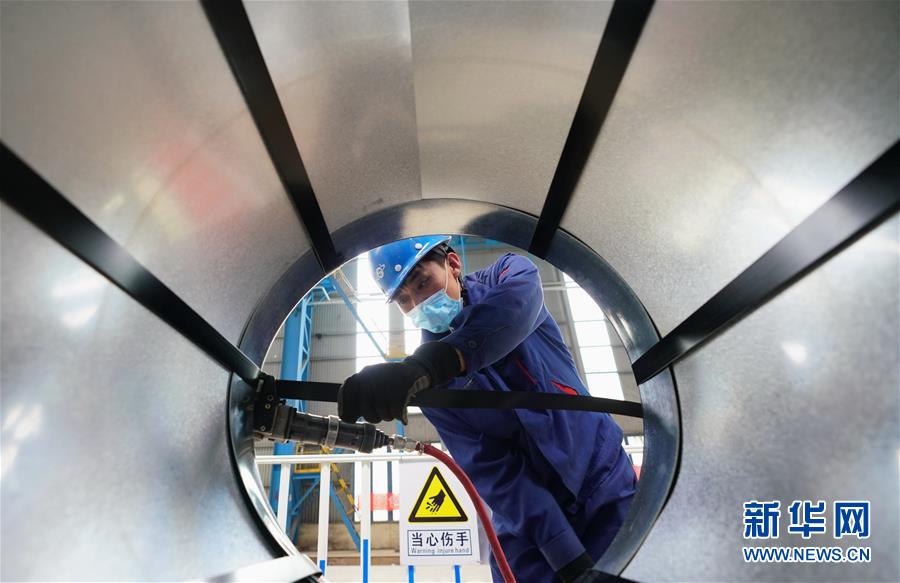 5月22日,工人在遷安市首鋼遷鋼高端汽車板生產(chǎn)車間對產(chǎn)品進(jìn)行包裝。近日,首鋼股份公司遷安鋼鐵公司高端汽車板生產(chǎn)線項(xiàng)目在河北省遷安市投產(chǎn)。該項(xiàng)目具有技術(shù)水平領(lǐng)先、操作智能、節(jié)能環(huán)保等優(yōu)勢,酸洗板材年產(chǎn)量達(dá)100萬噸,產(chǎn)品主要應(yīng)用于高端汽車零部件生產(chǎn)及空調(diào)壓縮機(jī)用鋼和高強(qiáng)系列用鋼、精沖用鋼等多個(gè)領(lǐng)域。新華社記者 楊世堯 攝