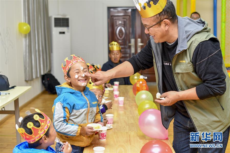 5月27日,玉麥鄉(xiāng)小學(xué)的孩子們在慶祝“生日”。新華社記者王炳坤攝