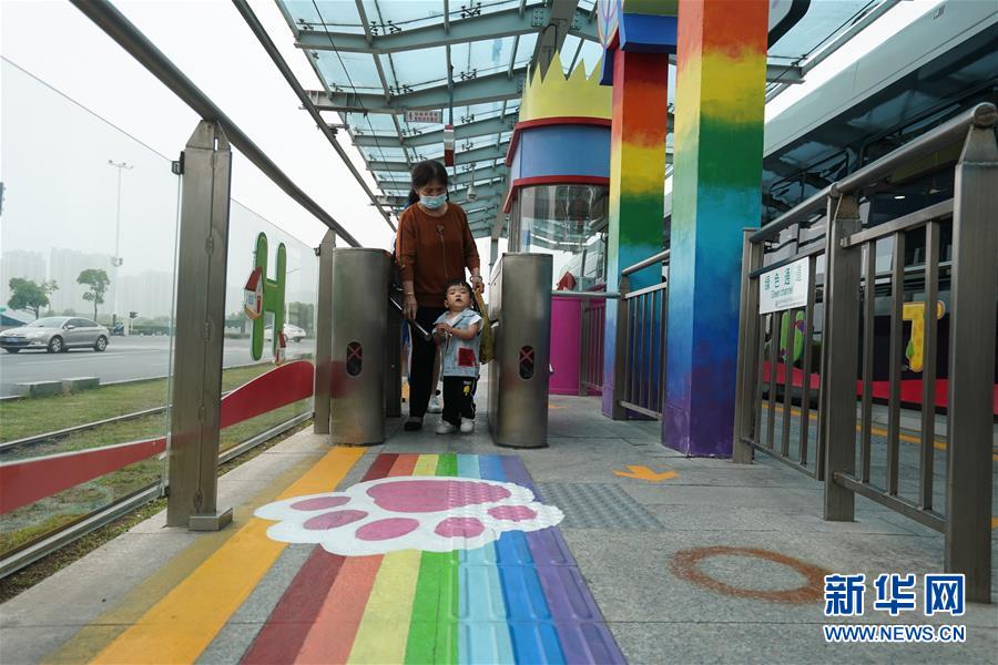 5月31日,乘客在南京市建鄴區(qū)河西新城有軌電車友誼街站候車?!傲弧眹H兒童節(jié)前夕,江蘇省南京市建鄴區(qū)河西新城有軌電車友誼街站裝扮一新,站臺(tái)上的城堡、熱氣球等充滿童趣的元素讓乘客仿佛置身“童話世界”。該站臨近南京市兒童醫(yī)院河西院區(qū),家長(zhǎng)和兒童乘客較多。新華社記者季春鵬攝