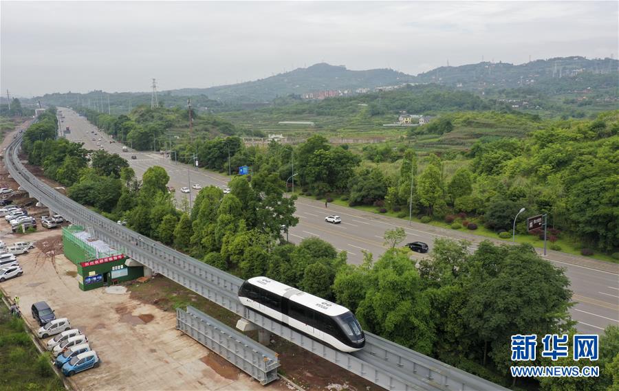 6月3日,一臺“云巴”在專用運(yùn)行軌道上進(jìn)行調(diào)試(無人機(jī)照片)。近日,重慶市首條“云巴”示范線項(xiàng)目在重慶璧山區(qū)正式亮相。此次發(fā)布的“云巴”采用電能驅(qū)動(dòng),具有轉(zhuǎn)彎半徑小、爬坡能力強(qiáng)、噪音低、安全性高、建設(shè)成本低、建造周期短等優(yōu)勢,能為乘客提供更智能、舒適、便捷的出行體驗(yàn)。據(jù)介紹,璧山區(qū)“云巴”示范線項(xiàng)目自2019年8月開建,線路正線全長15.4km,共設(shè)車站15座,預(yù)計(jì)2020年9月全線通車。新華社記者劉潺攝。