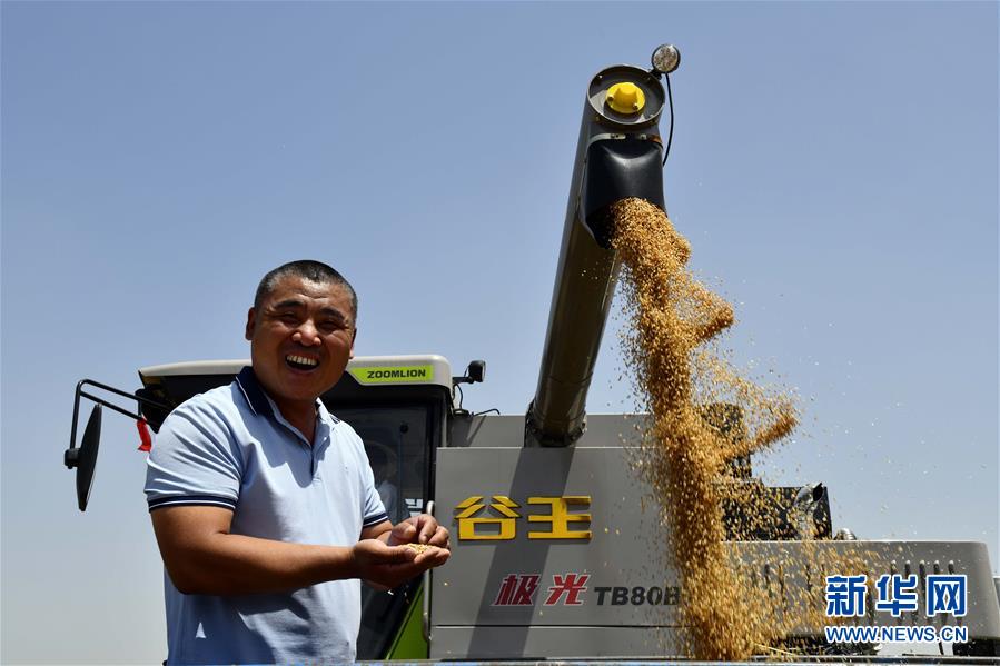 6月3日,在汶上縣郭倉(cāng)鎮(zhèn),種糧大戶郭波波在收獲小麥。目前,我國(guó)第二大小麥主產(chǎn)區(qū)山東6000多萬(wàn)畝小麥進(jìn)入收獲階段。農(nóng)民們搶抓有利天氣,自南向北陸續(xù)開(kāi)鐮。新華社記者郭緒雷攝。