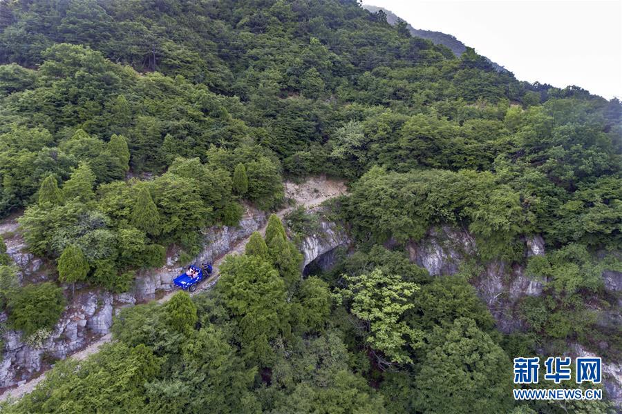 6月2日,秦春蘭、秦秋蘭和秦興旺姐弟三人乘坐父親駕駛的三輪車前往學校(無人機照片)。