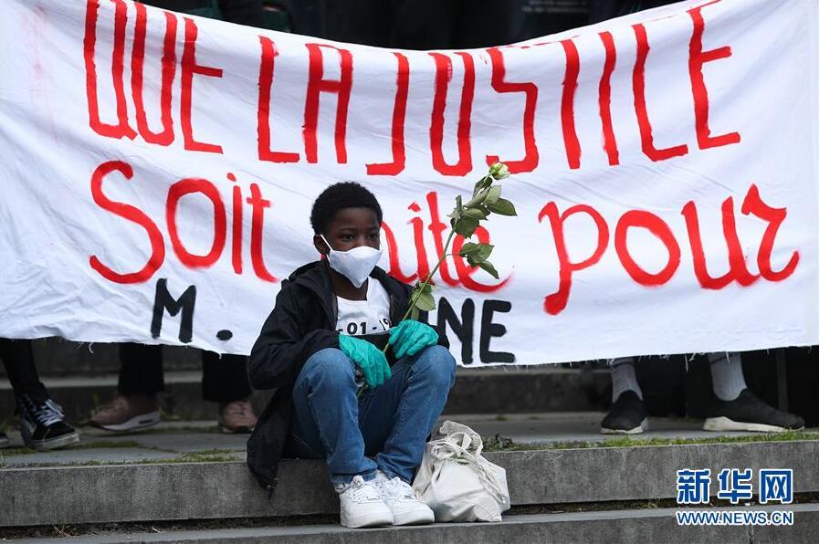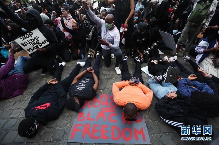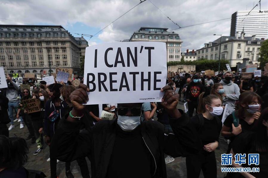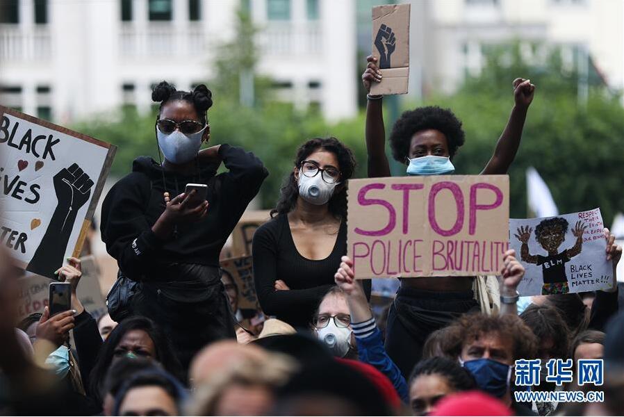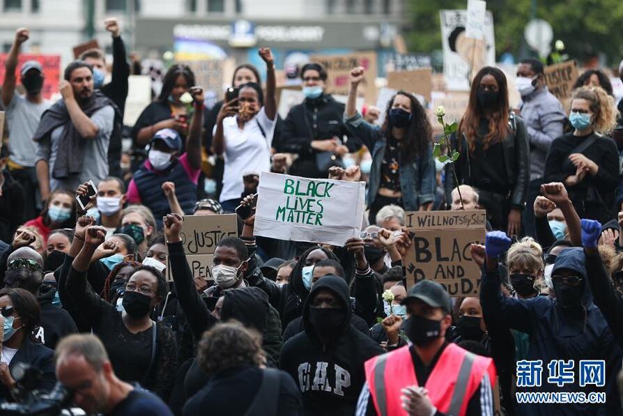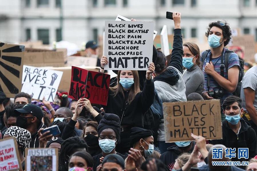 6月7日,民眾在比利時布魯塞爾市中心的司法宮附近參加示威活動。比利時民眾當日在布魯塞爾市中心的司法宮附近舉行示威活動,抗議美國明尼阿波利斯市警察暴力執(zhí)法致非裔男子喬治·弗洛伊德死亡。新華社記者鄭煥松攝