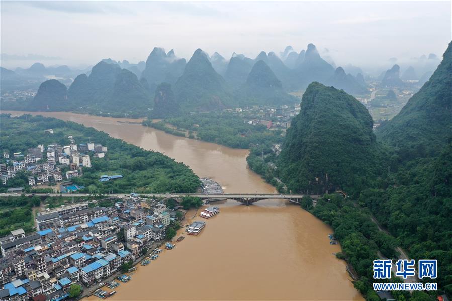 這是洪水奔流的漓江流過廣西陽朔縣境內(nèi)(6月8日攝,無人機(jī)照片)。6月6日至8日,廣西陽朔縣普降暴雨,局部降特大暴雨,全縣9個(gè)鄉(xiāng)鎮(zhèn)出現(xiàn)洪澇災(zāi)害。目前,全縣正有序開展災(zāi)后生產(chǎn)生活恢復(fù)。新華社記者陸波岸攝
