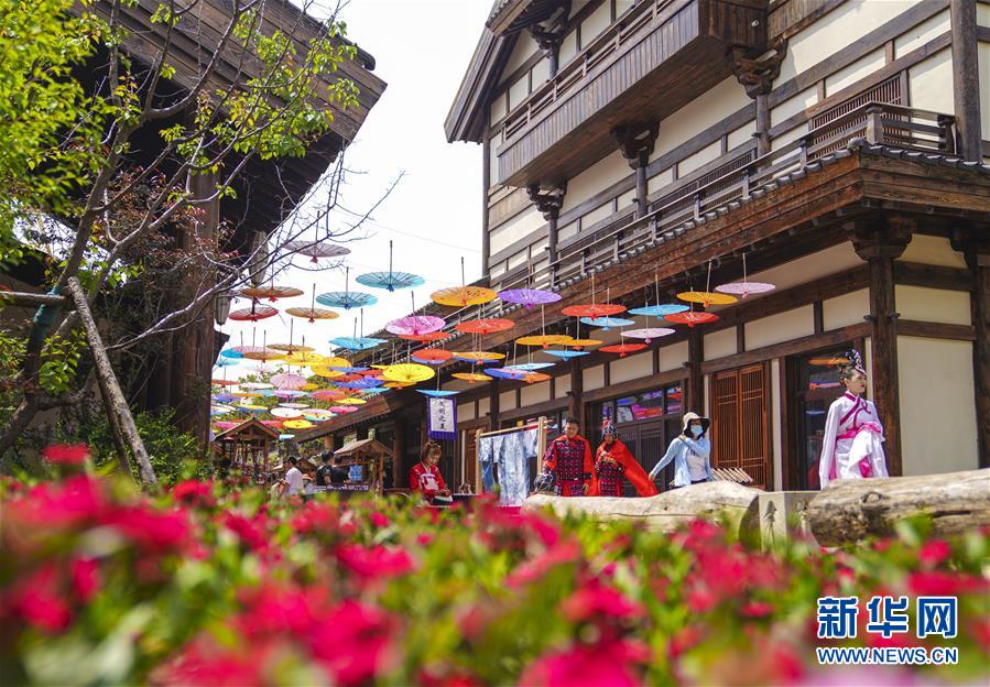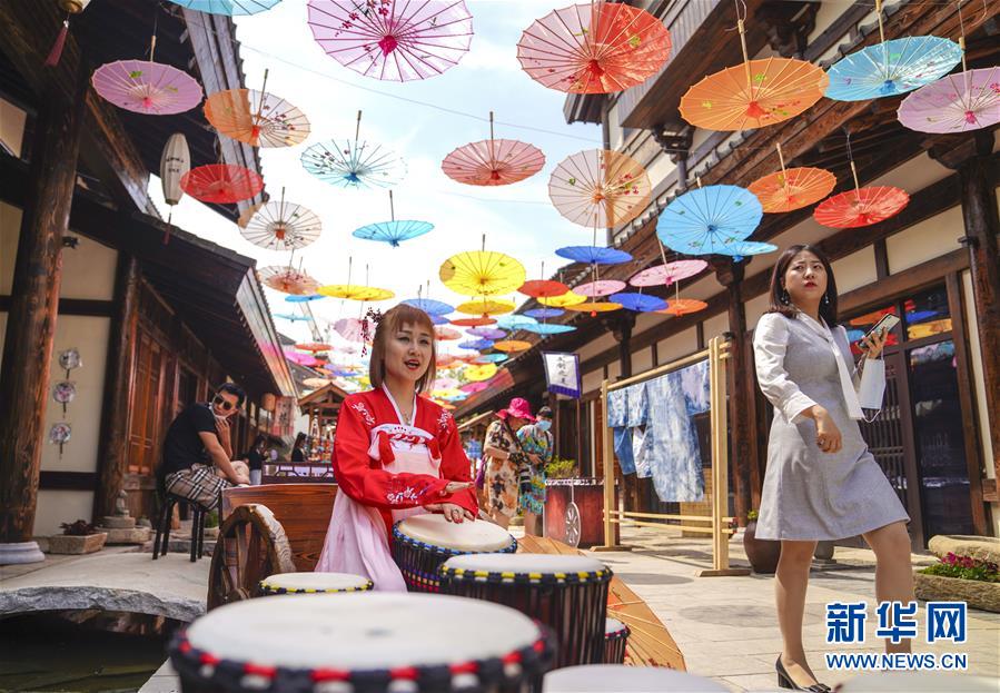 6月13日,在長春市世茂蓮花山小鎮(zhèn)寬厚里商街,表演者身穿漢服、古裝進(jìn)行表演展示。當(dāng)日是“文化和自然遺產(chǎn)日”。吉林長春首屆蓮花山消夏生活節(jié)在世茂蓮花山小鎮(zhèn)舉行?;顒訉⒎沁z展示與假日消暑休閑相結(jié)合,讓游人在“古色古香”的油紙傘巷中品傳統(tǒng)文化魅力,享夏日休閑愜意。新華社記者許暢攝。