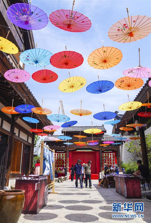 6月13日,市民在長春市世茂蓮花山小鎮(zhèn)寬厚里商街參觀游覽。當(dāng)日是“文化和自然遺產(chǎn)日”。吉林長春首屆蓮花山消夏生活節(jié)在世茂蓮花山小鎮(zhèn)舉行?;顒訉⒎沁z展示與假日消暑休閑相結(jié)合,讓游人在“古色古香”的油紙傘巷中品傳統(tǒng)文化魅力,享夏日休閑愜意。新華社記者許暢攝。