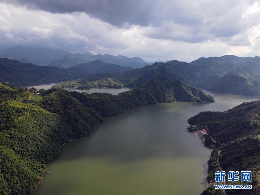 這是6月17日拍攝的位于安徽省霍山縣的白蓮崖水庫(無人機(jī)照片)。新華社記者 周牧 攝