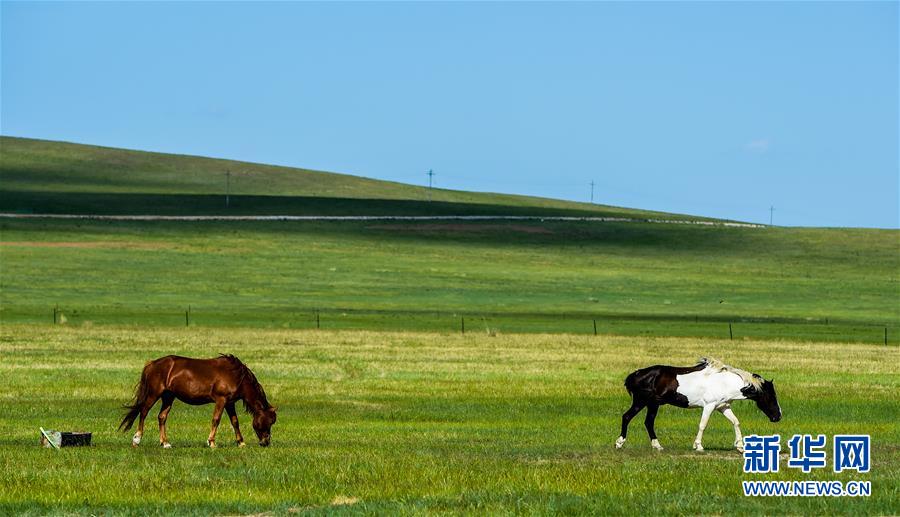 6月17日,馬兒在錫林郭勒盟烏拉蓋草原上吃草。初夏時(shí)節(jié),內(nèi)蒙古中部的錫林郭勒大草原風(fēng)景如畫(huà)。新華社記者連振攝
