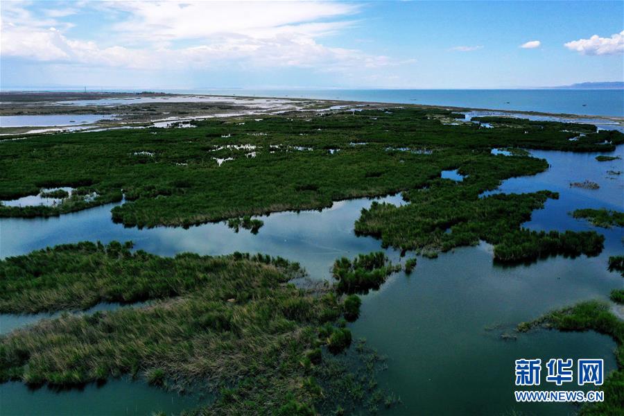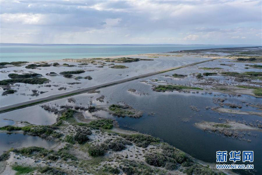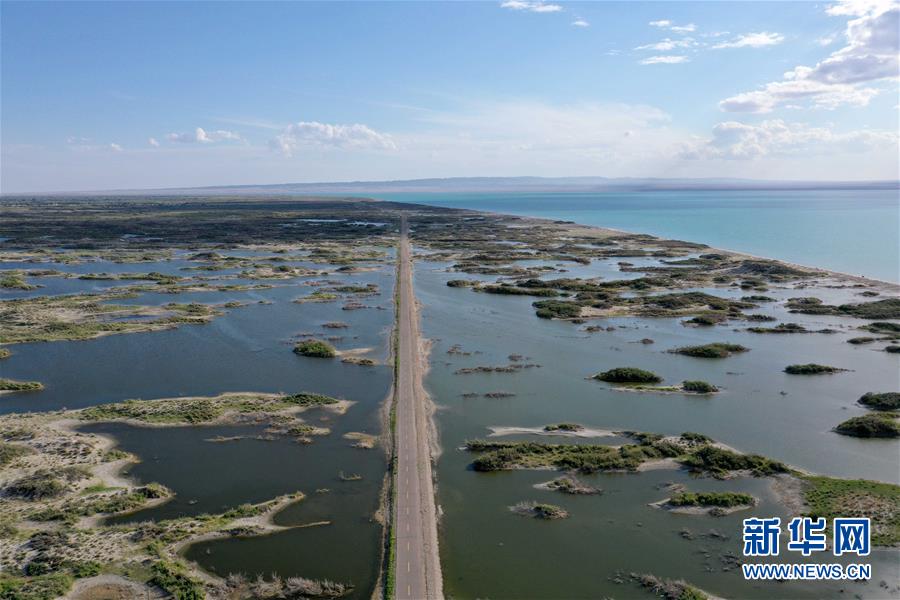 6月19日拍攝的新疆烏倫古湖國家濕地公園(無人機照片)。烏倫古湖國家濕地公園位于新疆阿勒泰地區(qū)福??h城以西,由烏倫古湖和吉力湖兩部分組成。烏倫古湖濕地公園是遷徙候鳥飛越天山和阿爾泰山的“能量補充站”,良好的濕地生態(tài)吸引著大量遷徙鳥類在此集結成群,繁殖棲息,成為一道靚麗的風景線。新華社記者 沙達提 攝
