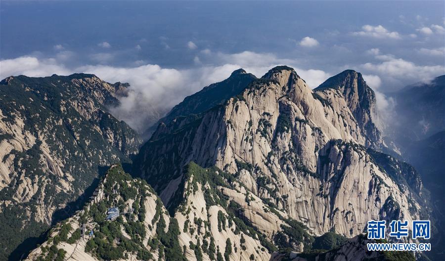 6月18日,白云飄動下的華山。當日,西岳華山經(jīng)歷連續(xù)三天暴雨后,迎來燦爛的陽光。新華社記者 陶明 攝