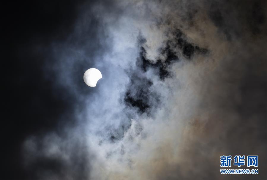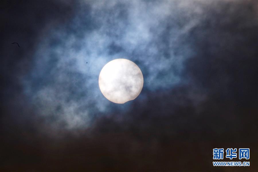 這是6月21日在北京宣武門附近拍攝的日食?!叭窄h(huán)食”天文景觀于6月21日“夏至日”下午在天宇上演。新華社記者 邢廣利 攝