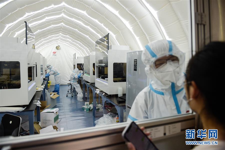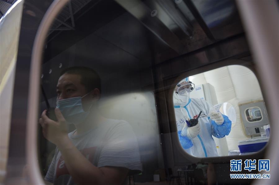 6月22日拍攝的建在北京大興體育中心綜合館的氣膜版“火眼”核酸檢測(cè)實(shí)驗(yàn)室。新華社記者彭子洋攝