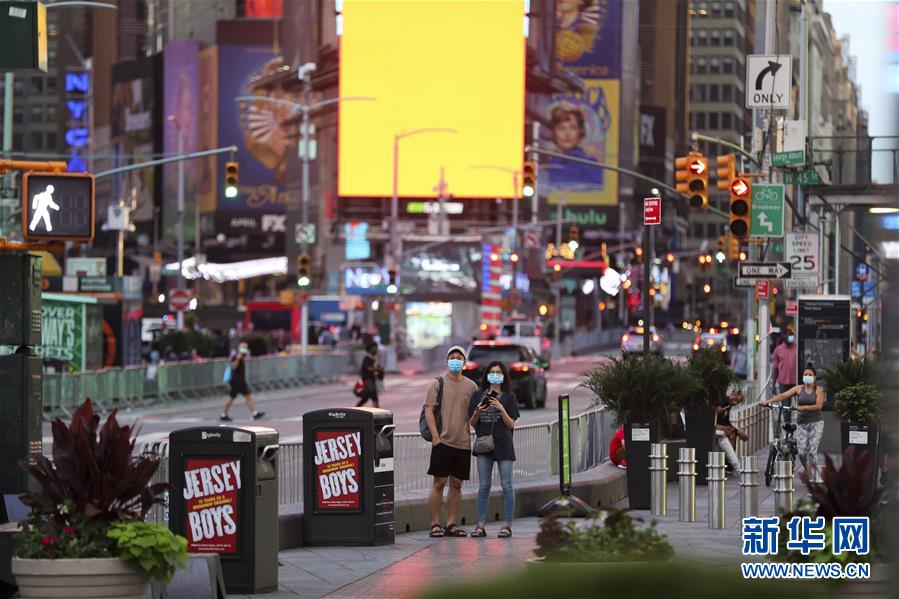 6月27日,人們在美國紐約時報廣場觀光。美國約翰斯·霍普金斯大學(xué)27日發(fā)布的新冠疫情最新統(tǒng)計數(shù)據(jù)顯示,截至美國東部時間27日16時35分(北京時間28日4時35分),美國累計新冠確診病例2500419例,累計死亡病例125434例。新華社記者王迎攝