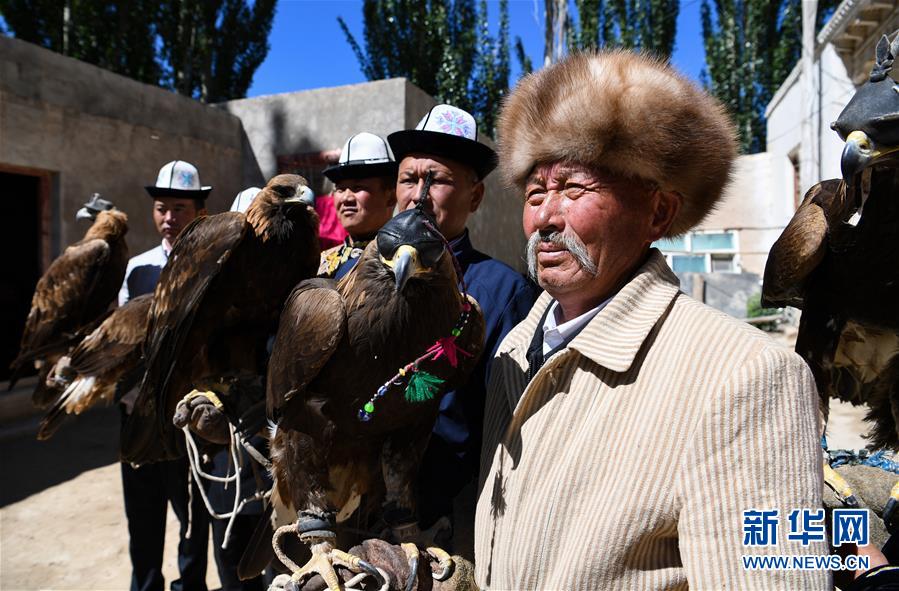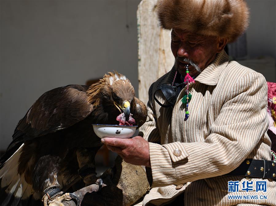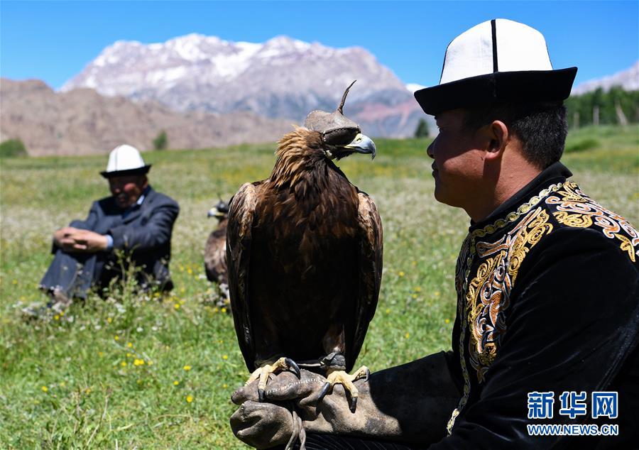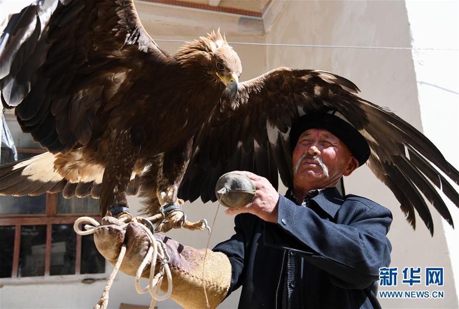 6月29日,庫爾馬西·胡特曼撫摸他的獵鷹。馴鷹習俗是柯爾克孜族長期以來形成的一種生產(chǎn)生活習俗,新疆克孜勒蘇柯爾克孜自治州阿合奇縣牙朗奇村的庫爾馬西·胡特曼今年69歲,是國家級非物質(zhì)文化遺產(chǎn)代表性項目柯爾克孜族馴鷹習俗的代表性傳承人。庫爾馬西的家族世代馴鷹。從小與鷹相處,庫爾馬西成為名副其實的“鷹語者”。要將兇猛的野鷹訓練成聽從指揮的獵鷹絕非易事,需要馴鷹人投入大量心血,精心喂養(yǎng)。一代代馴鷹人之間口耳相傳,形成了一套涵蓋取鷹、熬鷹、馴鷹、放鷹等方面的絕學?!苞検怯徐`性的動物,懂得感恩,會通過抖動羽毛來表示喜悅,表示對你的愛?!睅鞝栺R西說,“鷹也會因為我的夸獎給我信號,通過叫聲、身體語言告訴我,它理解了我的話?!痹诳聽柨俗巫宓鸟Z鷹傳統(tǒng)里,獵鷹在為主人“服役”一到五年后,將重返天空,獲得自由。隨著野生動物保護相關法規(guī)的出臺,當?shù)匾呀柜Z鷹人取鷹捕鷹,目前已馴養(yǎng)的獵鷹放飛后恐將無以為繼?;蛟S,庫爾馬西這一代人,將成為最后的“鷹語者”。新華社記者宋彥樺攝
