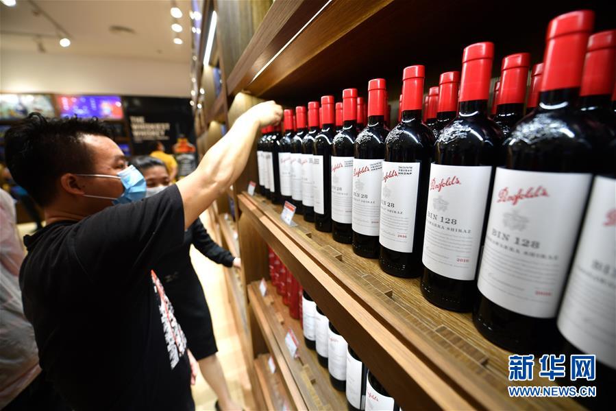 7月1日,顧客在??谌赵聫V場免稅店選購酒類商品。當日,海南開始實施調整后的離島免稅購物政策。海南離島旅客每年每人免稅購物額度提高至10萬元,電子消費產品等7類新增商品開售。新華社記者郭程攝