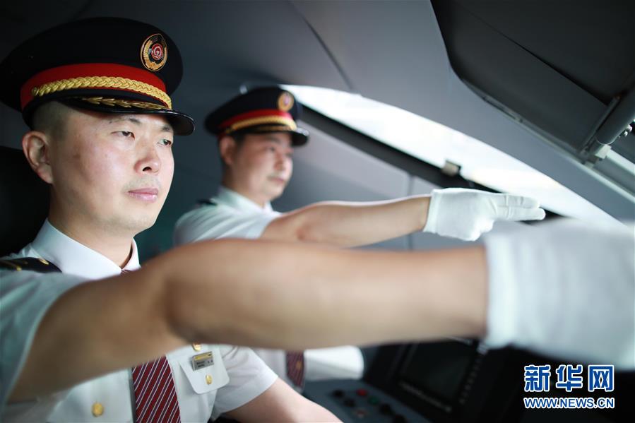 7月3日,擔(dān)任首發(fā)列車值乘工作的隨車機(jī)械師在貴陽(yáng)亮相。 新華社記者 劉續(xù) 攝