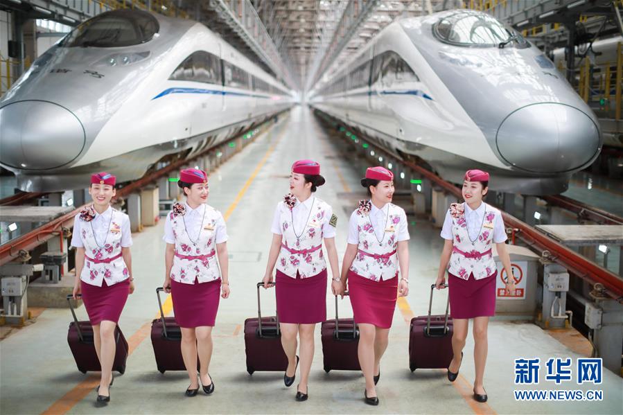 7月3日,擔(dān)任首發(fā)列車值乘工作的貴陽(yáng)客運(yùn)段乘務(wù)員在貴陽(yáng)亮相。 新華社記者 劉續(xù) 攝