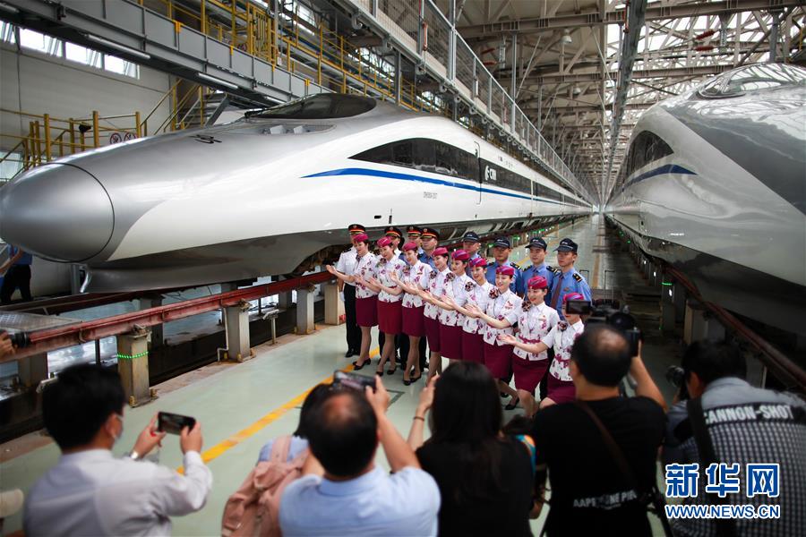 7月3日,擔(dān)任首發(fā)列車值乘工作的班組人員在貴陽(yáng)亮相。 新華社記者 劉續(xù) 攝