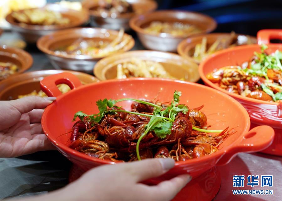 7月3日在上海豫園小吃城內(nèi)拍攝的小龍蝦菜肴。從7月第一個(gè)周末起,上海豫園原有的“豫園六點(diǎn)半”集市全面升級(jí),煥彩燈光、演藝活動(dòng)和花車集市全線更新,讓市民和游客在觀燈、觀人、觀演的沉浸式體驗(yàn)中,享受夏日特色的“食玩”樂趣。新華社記者 劉穎 攝