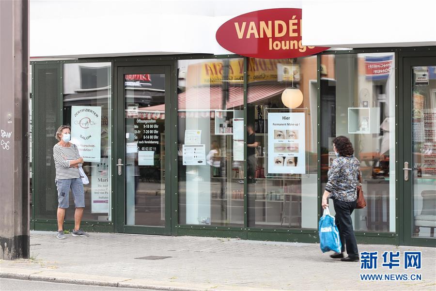 7月7日,一名佩戴口罩的女子(左)等待進(jìn)入德國首都柏林的一家理發(fā)店。針對有地方官員呼吁取消民眾乘坐公交車和在商場購物時(shí)須戴口罩的規(guī)定,德國聯(lián)邦政府6日表示,支持延續(xù)“口罩強(qiáng)制令”。4月底,德國全部16個(gè)聯(lián)邦州陸續(xù)出臺“口罩強(qiáng)制令”,即居民在乘坐公交車和購物時(shí)須佩戴口罩。新華社記者單宇琦攝