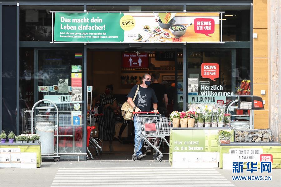 7月7日,一名佩戴口罩的男子離開德國首都柏林的一家超市。針對有地方官員呼吁取消民眾乘坐公交車和在商場購物時(shí)須戴口罩的規(guī)定,德國聯(lián)邦政府6日表示,支持延續(xù)“口罩強(qiáng)制令”。4月底,德國全部16個(gè)聯(lián)邦州陸續(xù)出臺“口罩強(qiáng)制令”,即居民在乘坐公交車和購物時(shí)須佩戴口罩。新華社記者單宇琦攝