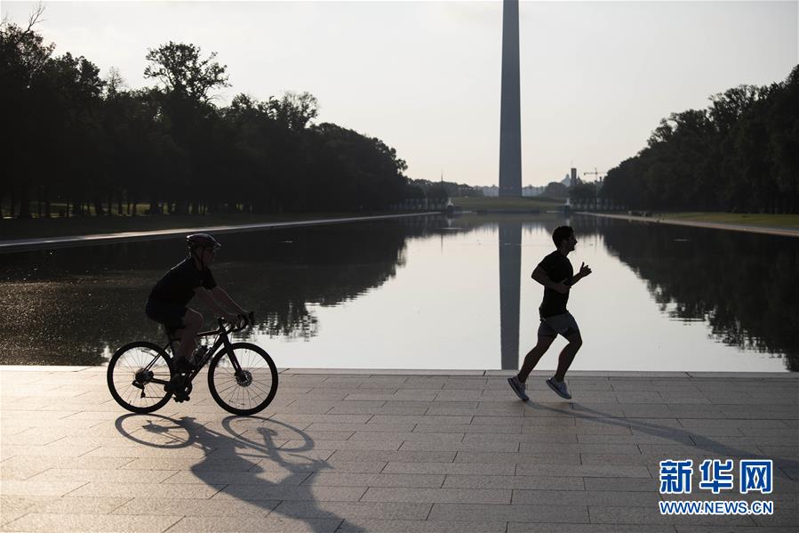 7月8日,在美國華盛頓,人們在林肯紀(jì)念堂倒影池旁運動健身。美國約翰斯·霍普金斯大學(xué)8日發(fā)布的新冠疫情最新統(tǒng)計數(shù)據(jù)顯示,美國累計確診病例超過300萬例。數(shù)據(jù)顯示,截至美國東部時間8日11時34分(北京時間23時34分),美國累計確診病例3016515例,累計死亡病例131594例。新華社記者劉杰攝