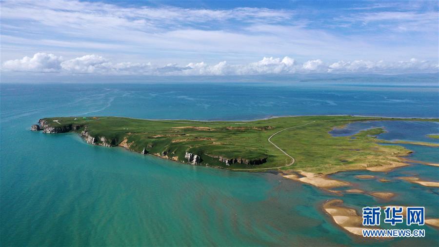 7月10日拍攝的青海湖風(fēng)光(無人機(jī)照片)。盛夏時(shí)節(jié),被譽(yù)為“中國最美湖泊”的青海湖畔景色宜人,藍(lán)天、白云、湖水與草原組成一幅壯美的畫卷。新華社記者張宏祥攝