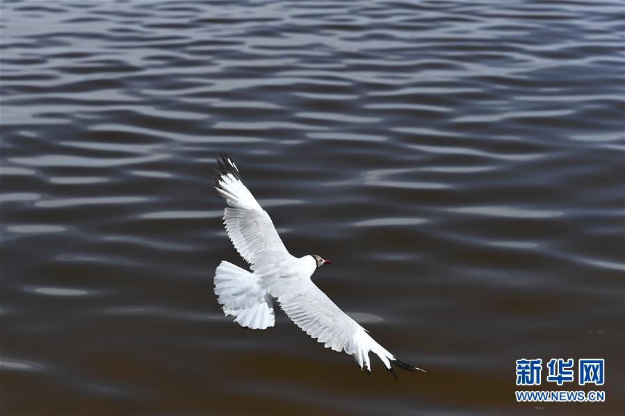 7月10日,一只棕頭鷗從青海湖湖面上飛過。盛夏時(shí)節(jié),被譽(yù)為“中國最美湖泊”的青海湖畔景色宜人,藍(lán)天、白云、湖水與草原組成一幅壯美的畫卷。新華社記者張宏祥攝