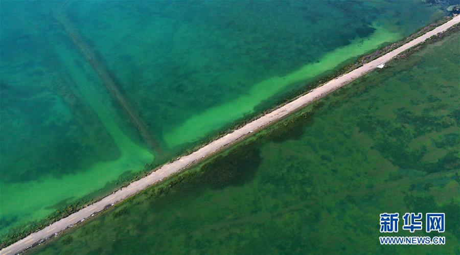 7月10日拍攝的青海湖畔風(fēng)光(無人機(jī)照片)。盛夏時(shí)節(jié),被譽(yù)為“中國最美湖泊”的青海湖畔景色宜人,藍(lán)天、白云、湖水與草原組成一幅壯美的畫卷。新華社記者張宏祥攝